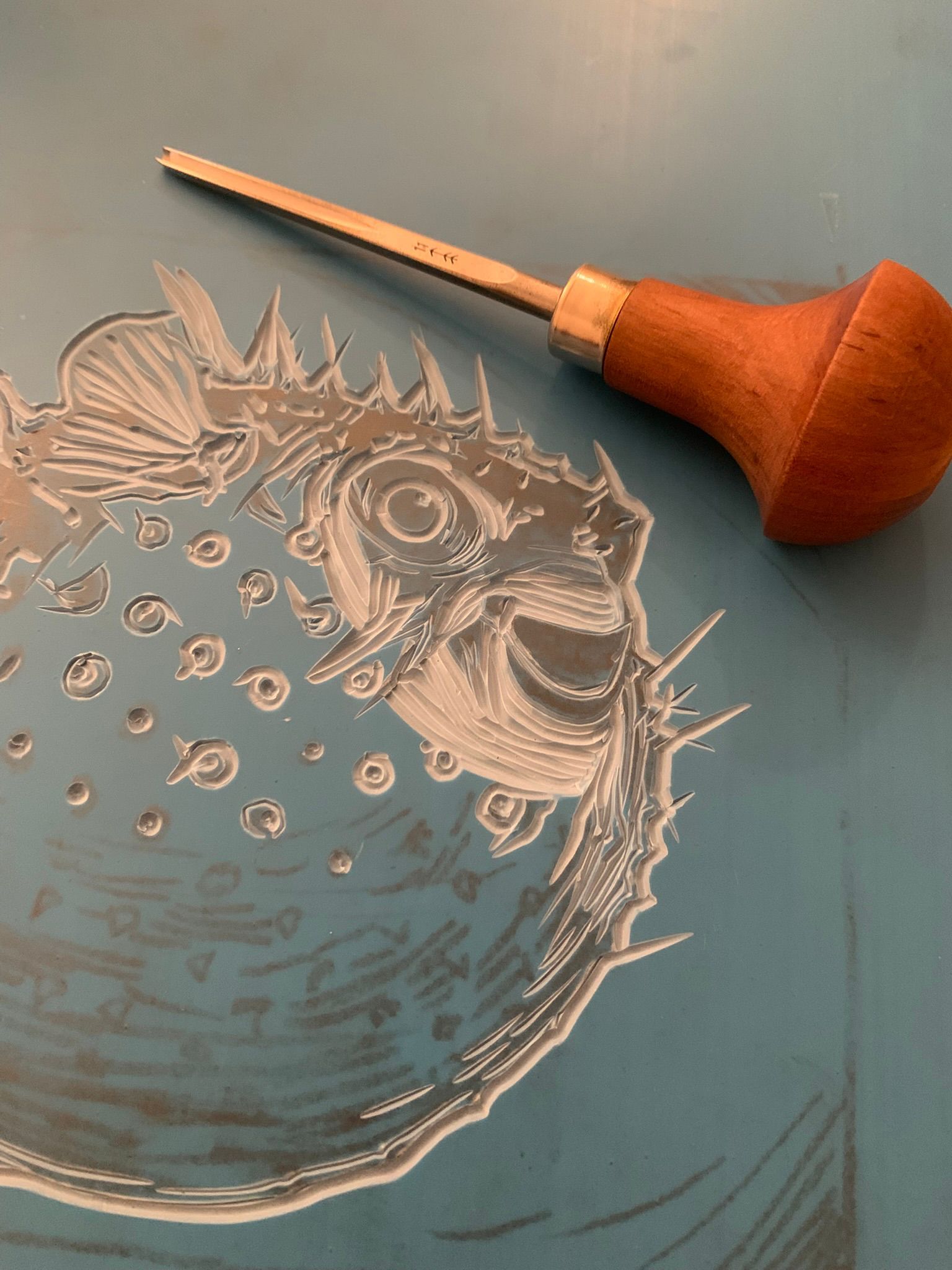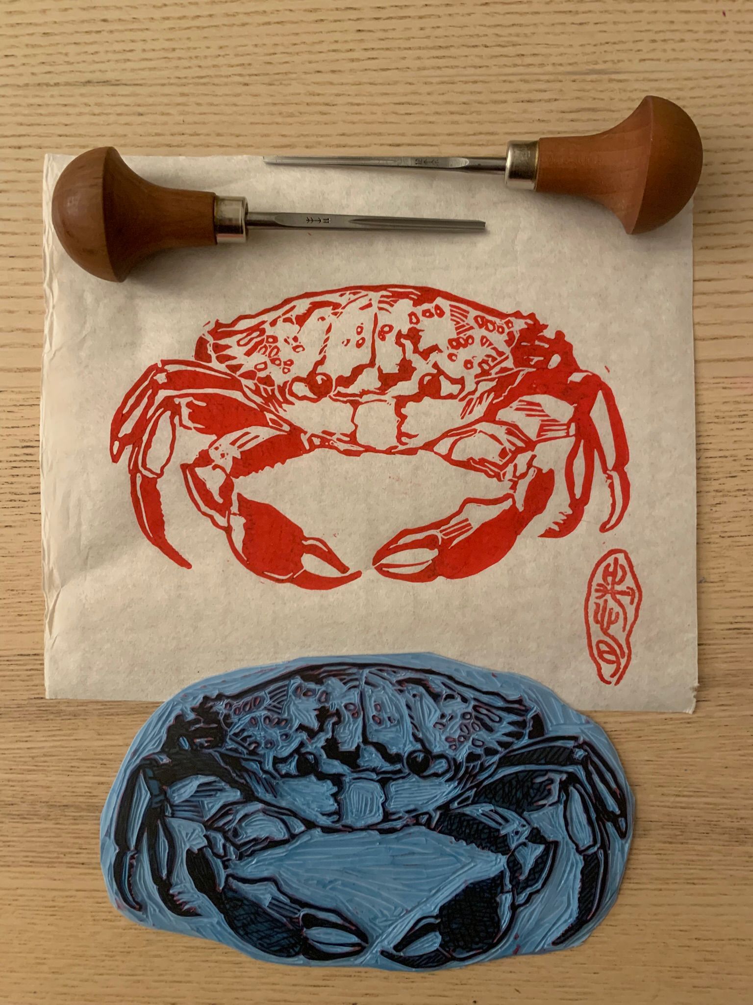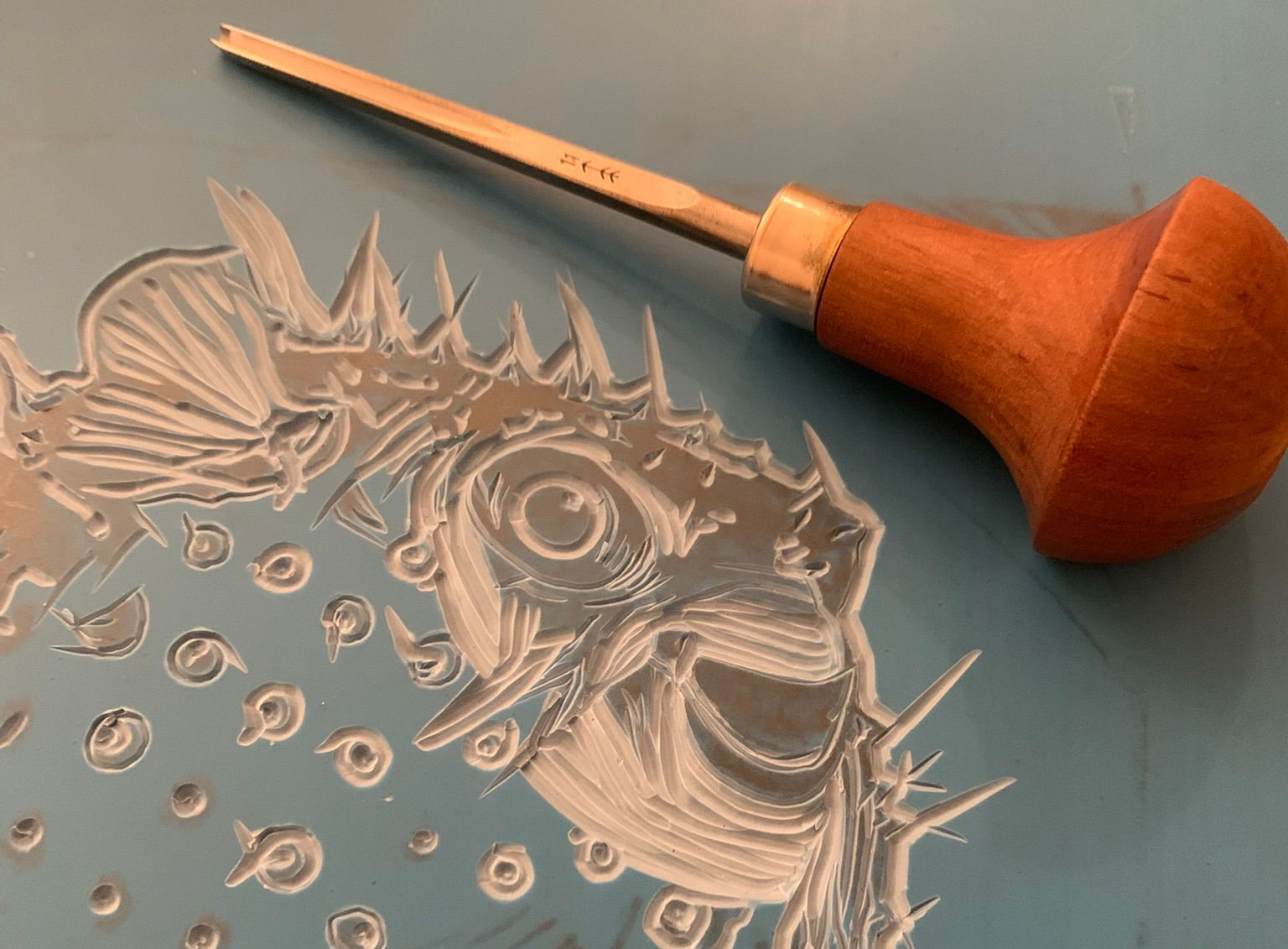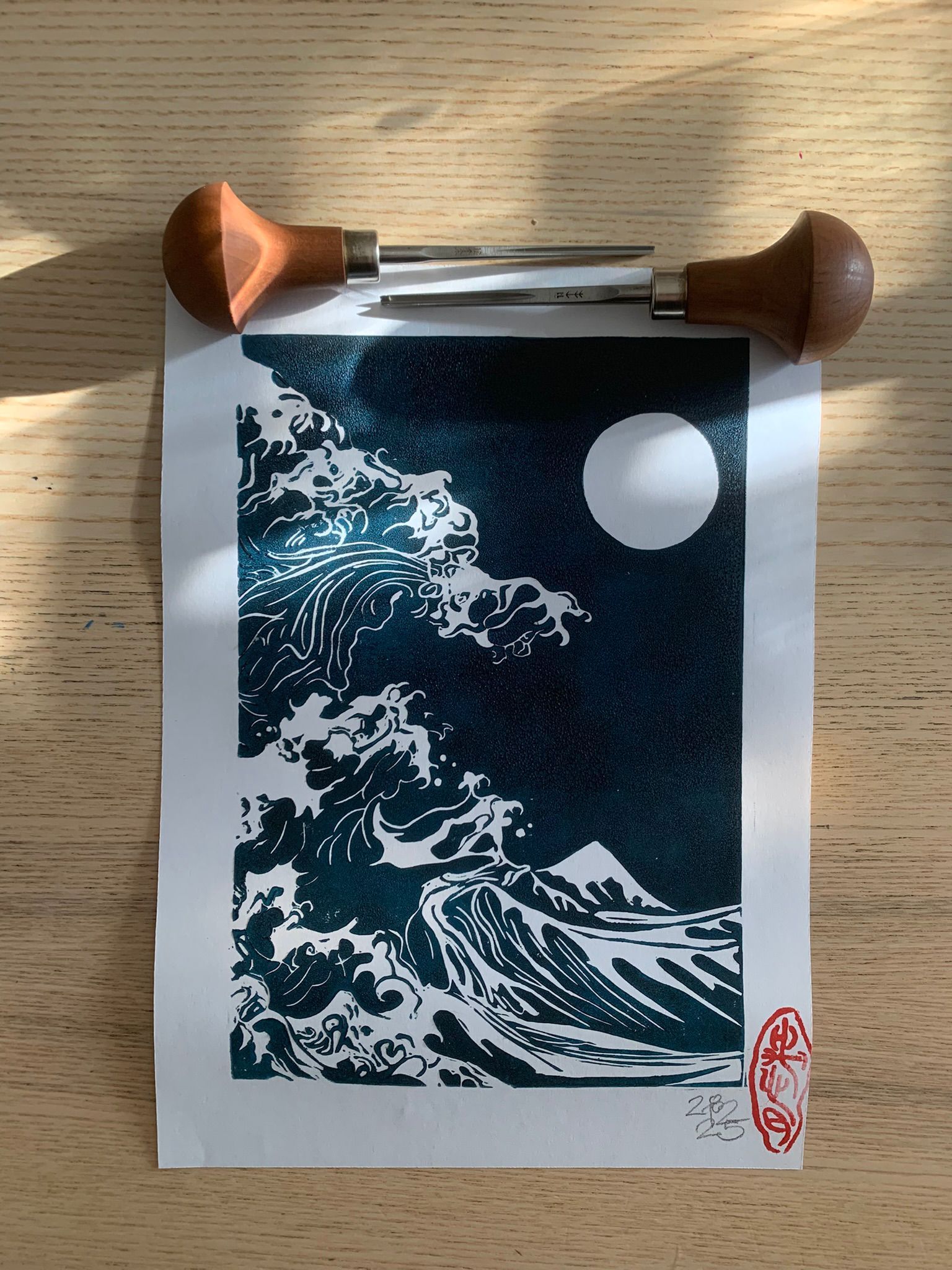 La linoleografia è la mia passione attuale. Ogni segno è scavato a mano nel linoleum e ogni stampa è impressa con cura, rendendo ogni esemplare unico nelle sue piccole imperfezioni.